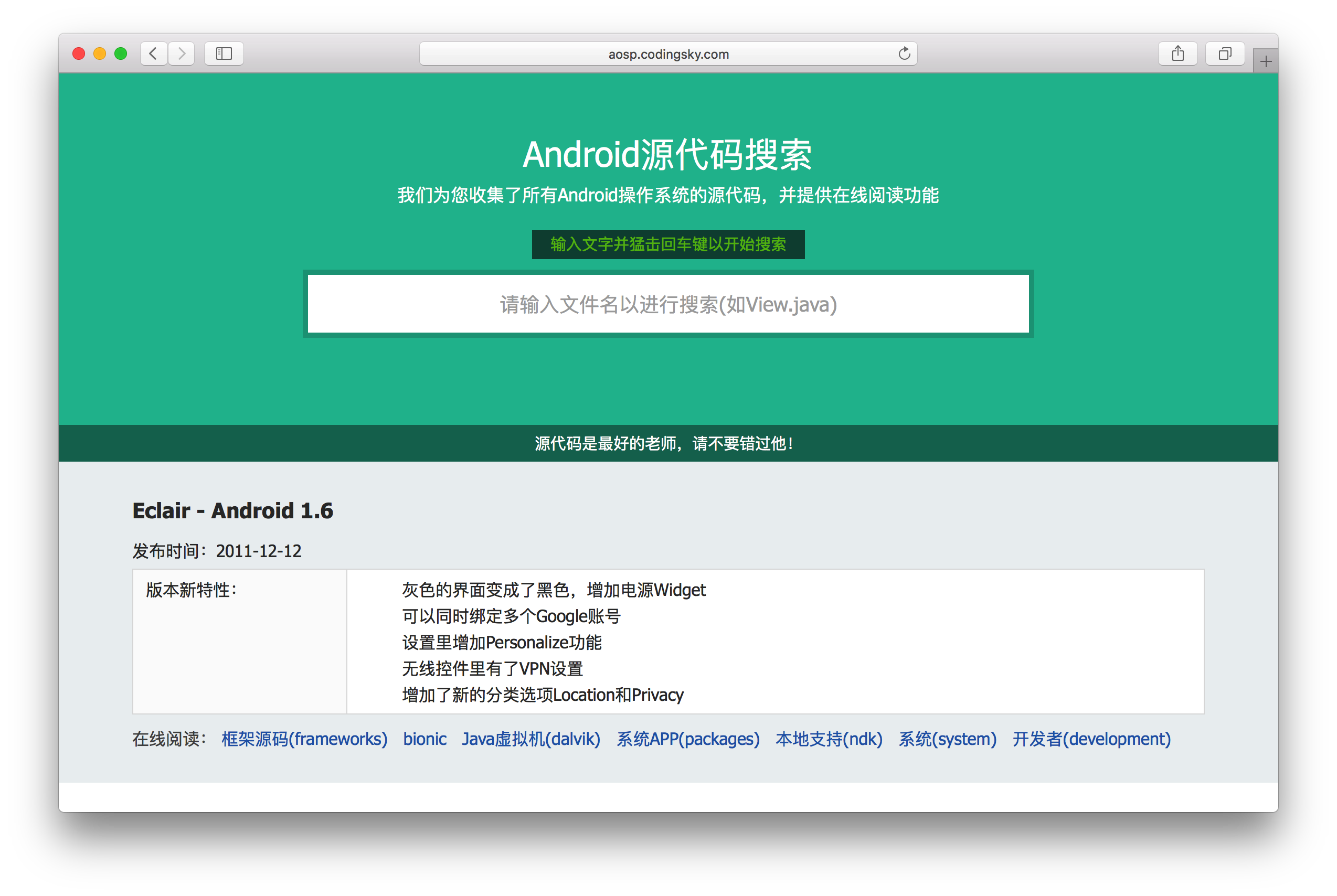 当然,你也可以从我们的官方保留站点访问,其地址为http://aosp.codingsky.com