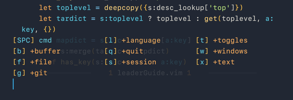 let g:leaderGuide_hspace = 5Display menus with a "+" in-front of the name. Off by default. This also has custom syntax highlighting when enabled.